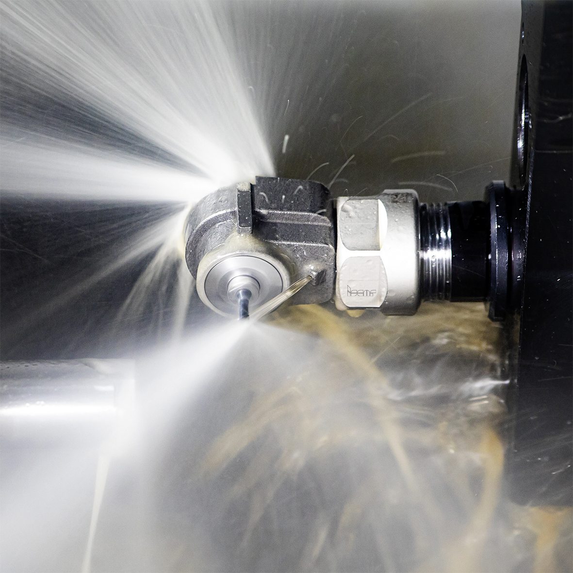 Fig. 5 – Compact MICRO 90 coolant-driven spindle is an effective tool to boost the rotational velocity of miniature cutting tools.